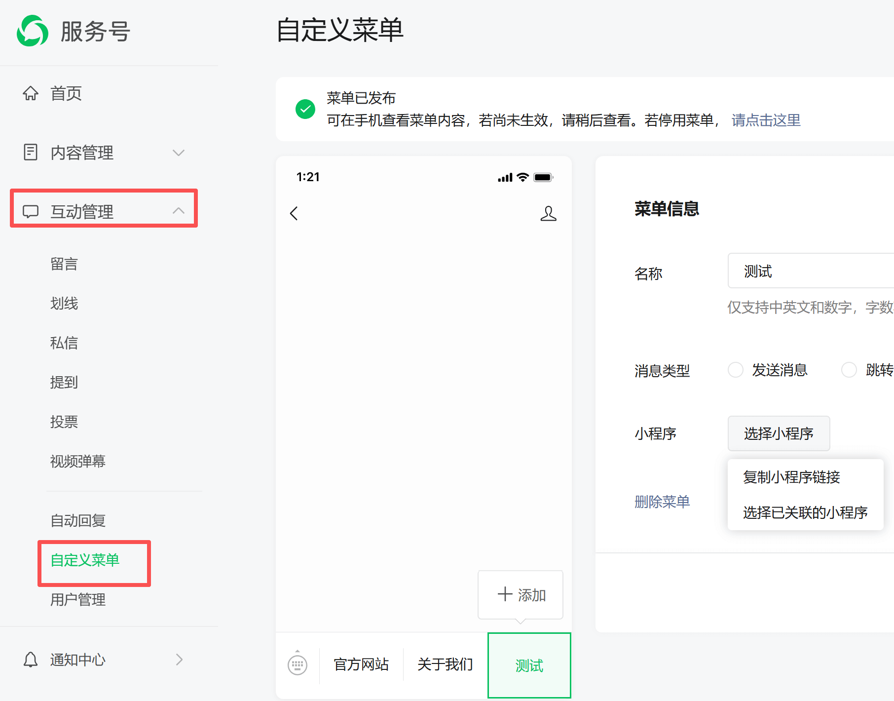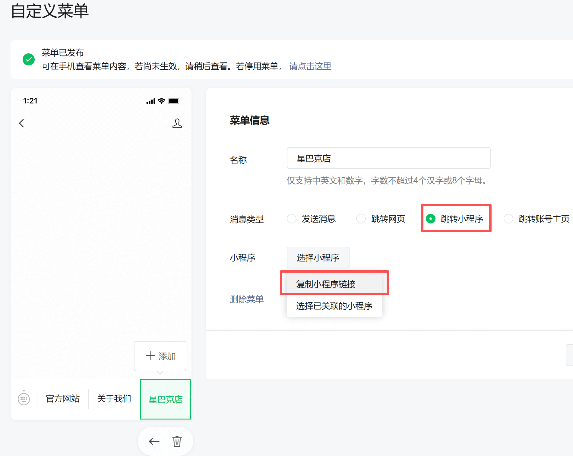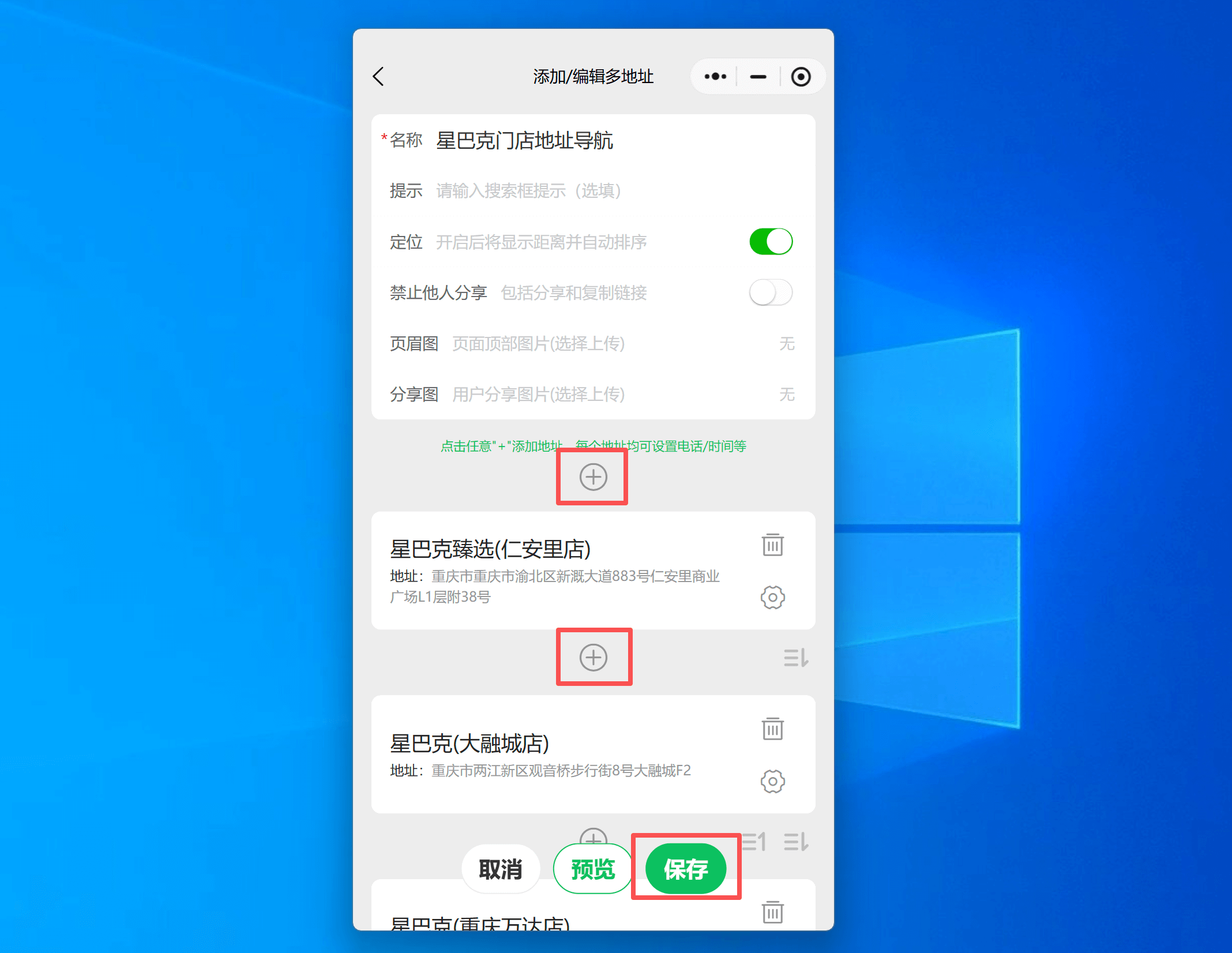 在菜单上添加多门店地址导航,点击弹出微信原生地图并可以选择在其他地图app中打开,还可以添加各门店的联系方式等信息,点击体验。
