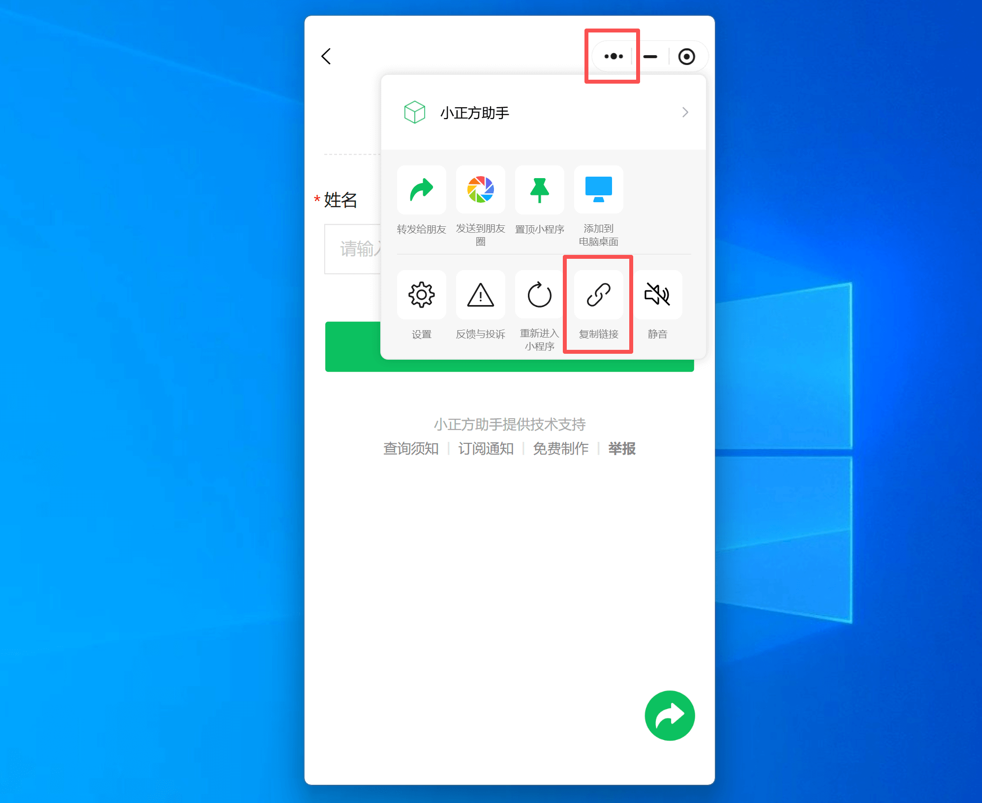 创建发布后,进入快查详情页点击页面右上角的“...”,点击弹出菜单中的“复制链接”